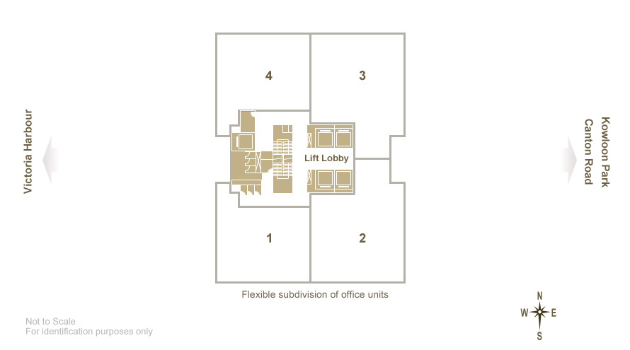 MFA: from 800 s.f to 12,000 s.f Whole floor areaNo. of Storey: 134 passenger lifts serving low and high zones1 service lift